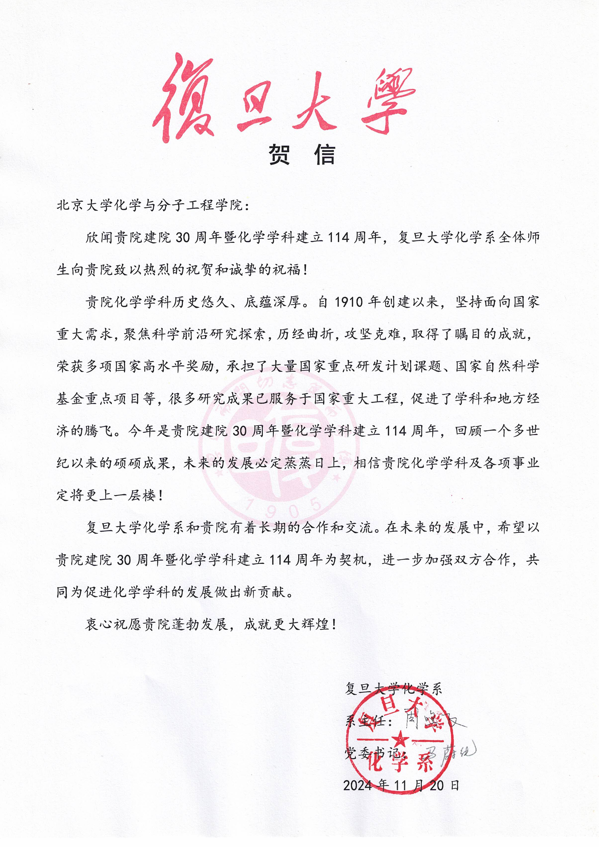 【贺信】-复旦大学化学系
